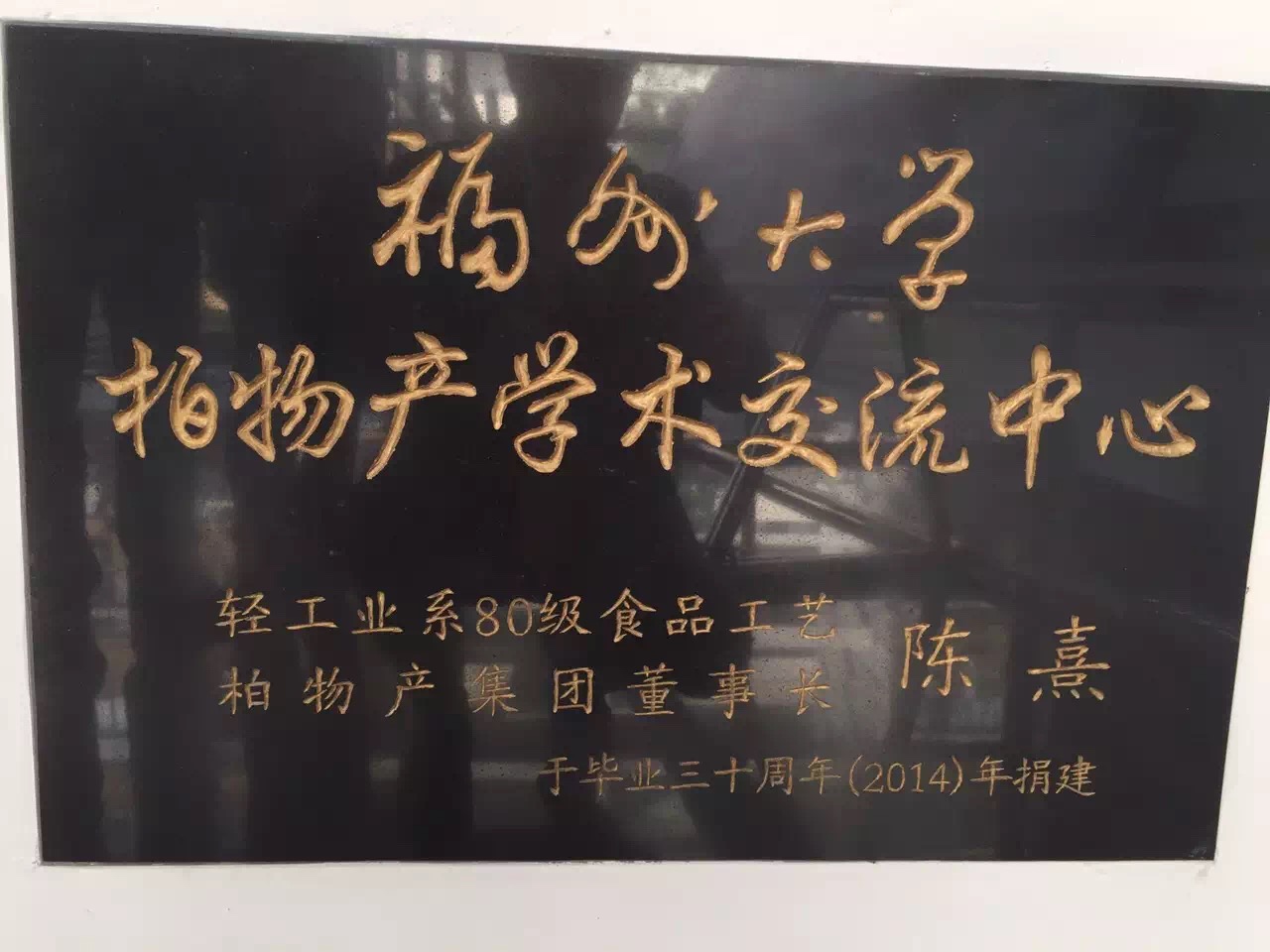 柏物產株式會社社長陳熹先生參加由福州柏物產食品有限公司捐贈建設的福州大學柏物產學術交流中心主體工程落成慶典。